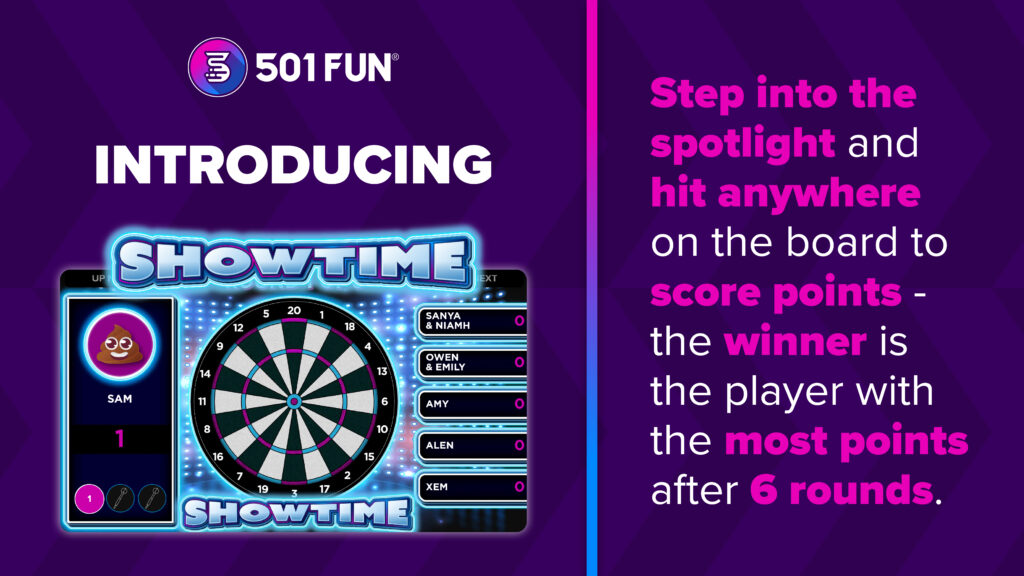 Step into the spotlight and hit anywhere on the board to score points – the winner is the player with the most points after 6 rounds.